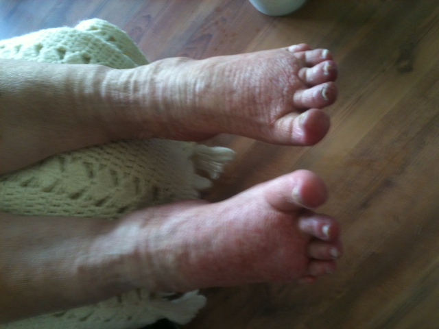 We have spent the last year and a half compression wrapping my feet and legs to get to this point. Here’s a picture of progress of wrapping my feet and legs and a picture of before.