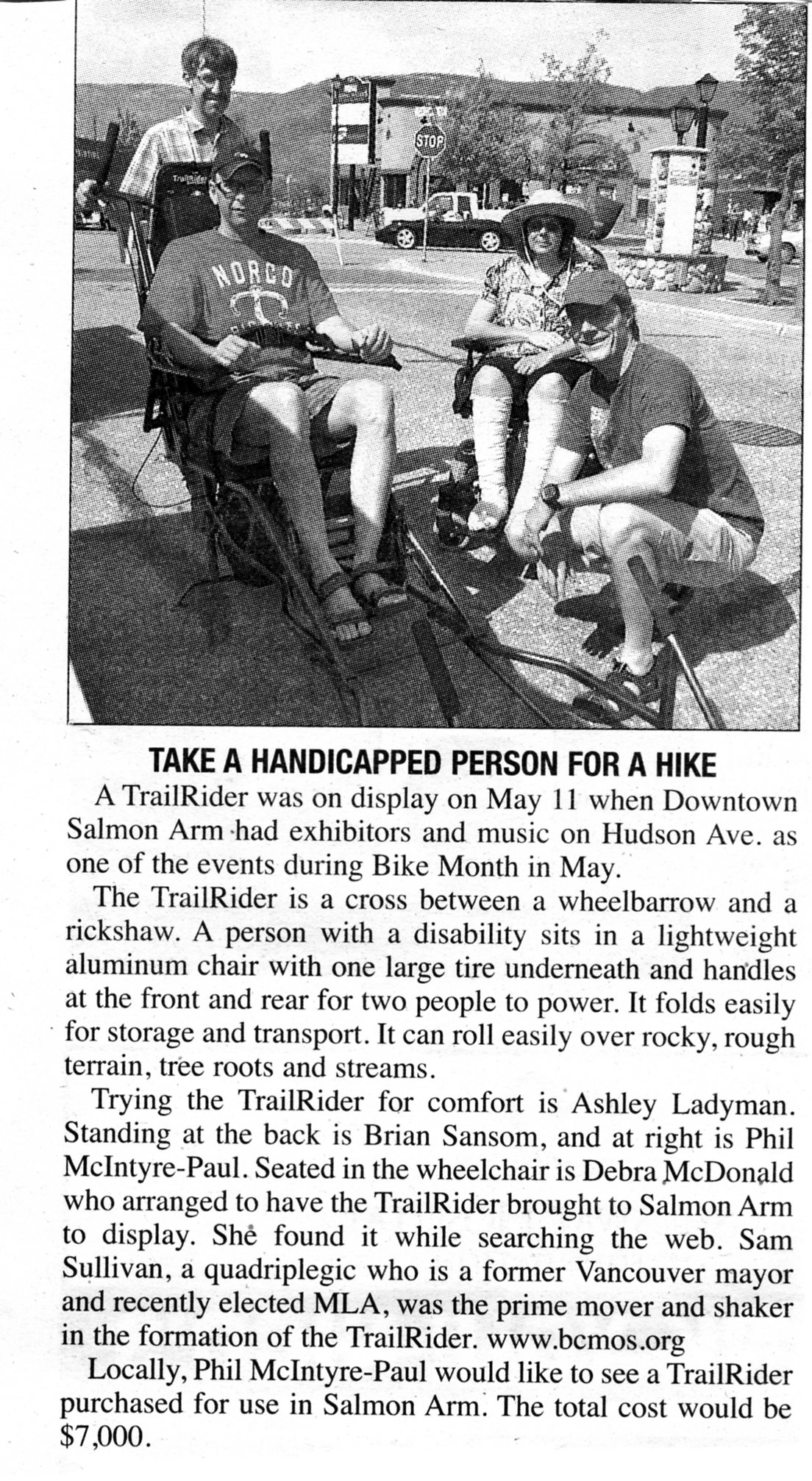 I am still working on getting a trailrider in the Shuswap. The bcmos lent me a